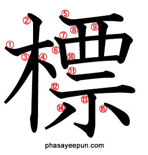 標 : kanji, คันจิ, ภาษาญี่ปุ่น 2022.03.232022.05.07 จำนวนขีดทั้งหมด: 15 ชั้นเรียน: ป.4 วิธีอ่าน: ตัวคาตาคานะ คือเสียงองโยะมิ, ตัวฮิรางานะ คือเสียงคุงโยะมิ ヒョウ ฝึกพิมพ์ดีด คำตัวอย่าง: 標識 hyou shiki https://www.phasayeepun.com/wp-content/uploads/1-2-0630-1.wav เครื่องหมาย, สัญญาณภาพ