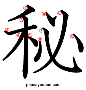 秘 : kanji, คันจิ, ภาษาญี่ปุ่น 2022.03.242022.05.07 จำนวนขีดทั้งหมด: 10 ชั้นเรียน: ป.6 วิธีอ่าน: ตัวคาตาคานะ คือเสียงองโยะมิ, ตัวฮิรางานะ คือเสียงคุงโยะมิ ヒ、ひ-める ฝึกพิมพ์ดีด คำตัวอย่าง: 秘める himeru https://www.phasayeepun.com/wp-content/uploads/1-2-0930-1.wav เก็บเป็นความลับ คำตัวอย่าง: 秘密 himitsu https://www.phasayeepun.com/wp-content/uploads/1-2-0930-2.wav ความลับ