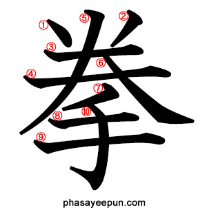 拳 : kanji, คันจิ, ภาษาญี่ปุ่น 2022.03.242022.05.07 จำนวนขีดทั้งหมด: 10 ชั้นเรียน: ม.1,2,3 วิธีอ่าน: ตัวคาตาคานะ คือเสียงองโยะมิ, ตัวฮิรางานะ คือเสียงคุงโยะมิ ケン、こぶし ฝึกพิมพ์ดีด คำตัวอย่าง: 拳 kobushi https://www.phasayeepun.com/wp-content/uploads/1-2-1392-1.wav กำปั้น คำตัวอย่าง: 拳闘 kentou https://www.phasayeepun.com/wp-content/uploads/1-2-1392-2.wav มวย